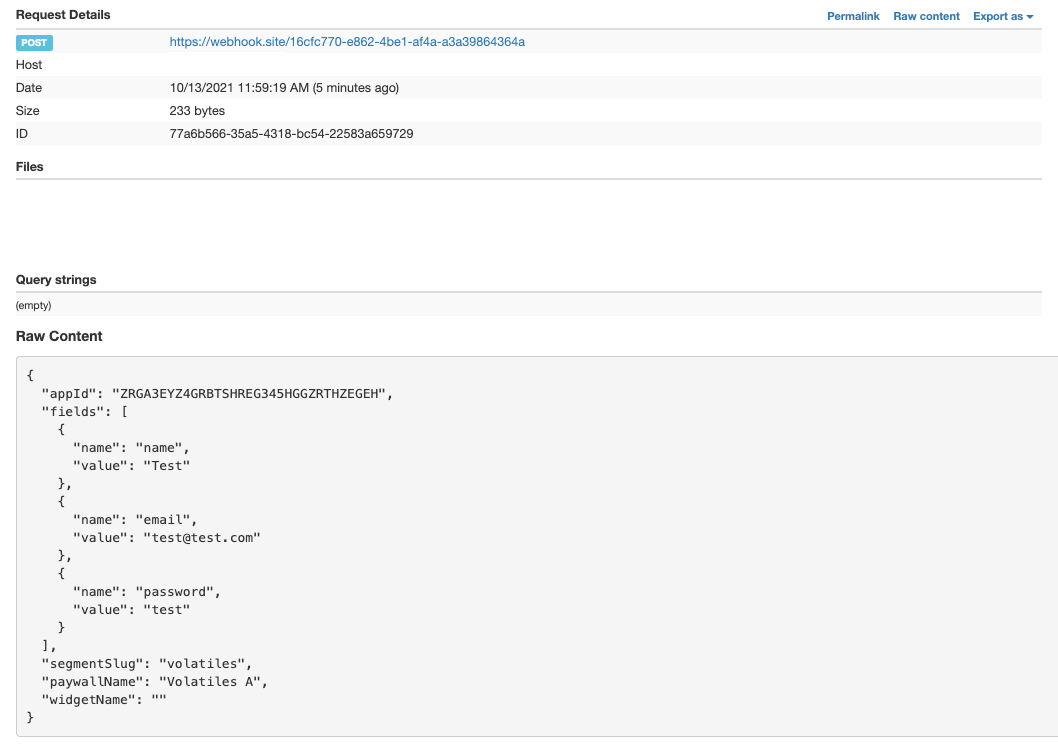 ℹ️ The webhook url is expected to send a 200 response even when there are fields